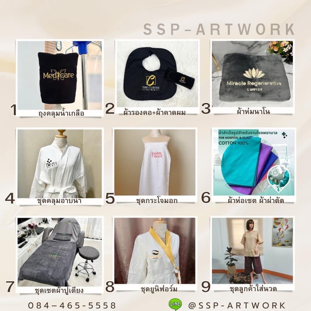 บริการรับปักผ้า ทุกชนิด โดยเฉพาะผ้าปูเตียงโรงพญาบาล คลินิกสถานเสริมความ สปา ทุกชนิด ทางร้านมีสินค้าพร้อมปักให้เลยนะคะ ปักด้วยระบบคอมพิวเตอร์ทันสมัย ด้วยเครื่องจักร Brother รุ่นล่าสุด